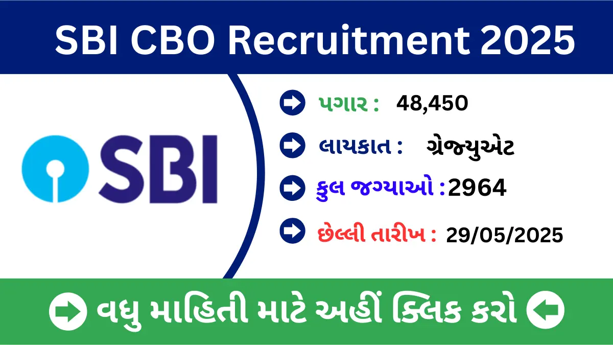 SBI CBO Recruitment 2025 : કોલેજ પાસ ઉમેદવારો માટે SBI બેંકમાં આવી દમદાર ભરતી, પગાર ₹48,480